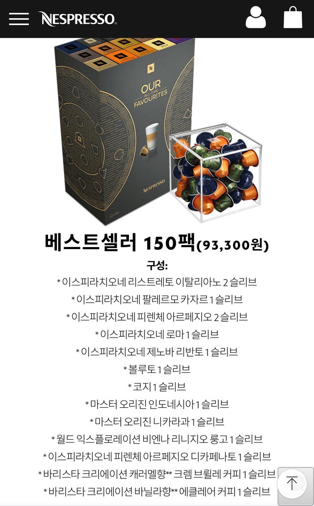 구성은 베스트셀러 150팩 + 뷰큐브 = 93,300원이네요 캡슐은 최저가 수준이고 뷰큐브는 41,000원 짜리더군요.