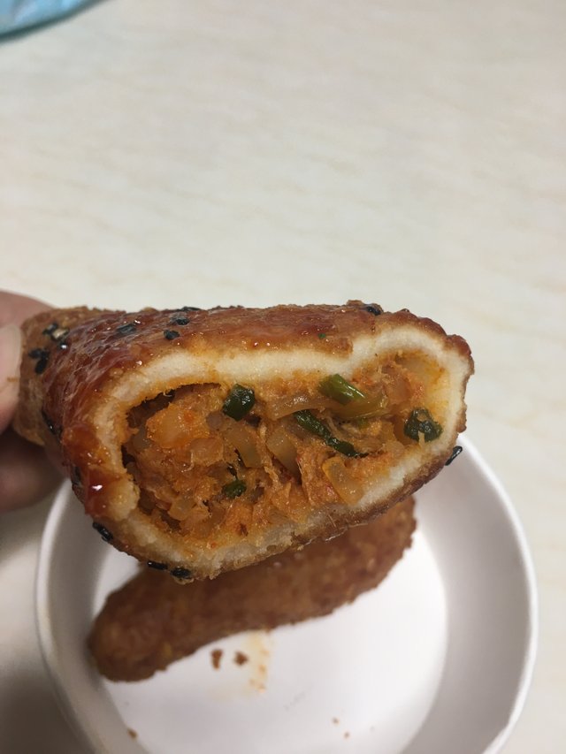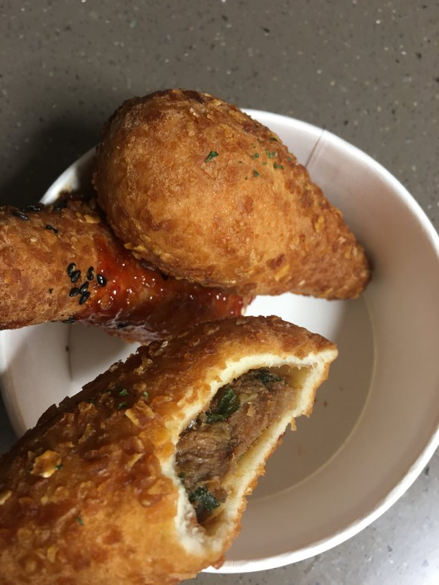 정확히는 치킨 고로케에요. 뚜레쥬르에서도 교촌 콜라보 고로케가 있었는데 비슷한거네요