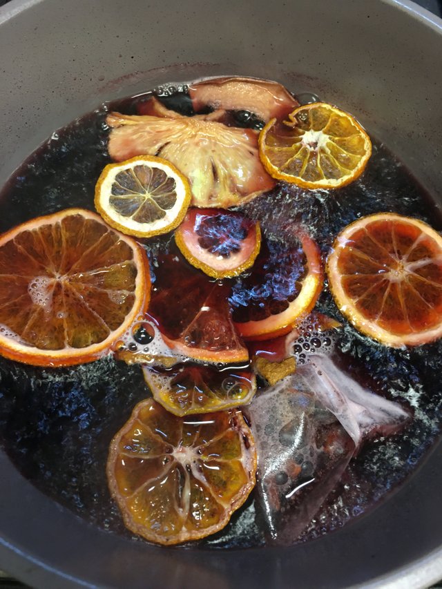 뱅쇼는 유럽에선 천연감기약으로 마시는 우리나라 쌍화탕 같은건데요 끓여서 알코올이 거의 없지만 마시면 나른해져서 기절하는 꿀잠 특효약이죠 어머니가 워낙 못주무셔서 수면유도제로 좋습니다.