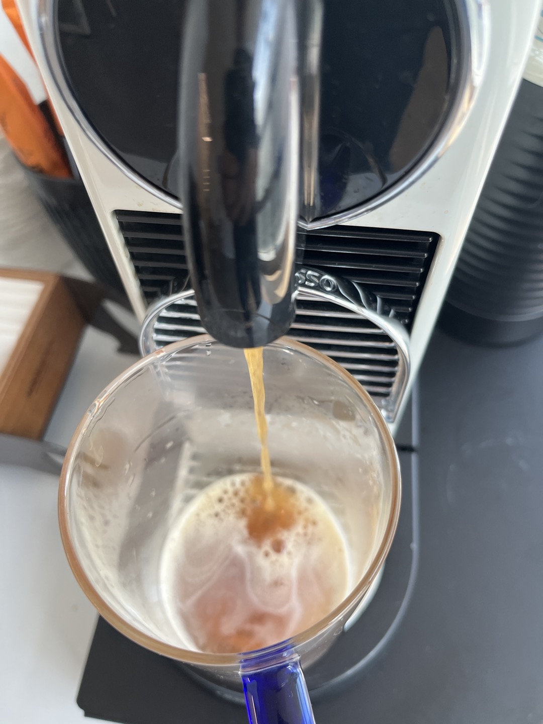 네스프레소 기계 앞에 커피 마셨던 물은 한번 뽑아내고