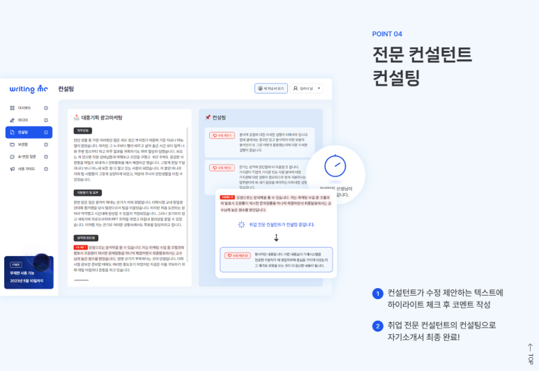 학생이 AI로 생성을 하고 컨설팅 요청을 하면 컨설턴트가 확인을 하고 컨설팅하고 피드백 해준다.