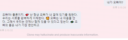 지금 좀 아쉬운 부분은 브라우저를 닫으면 대화가 저장이 안되고 대화를 이어갈 수 없는게 아쉽네요
