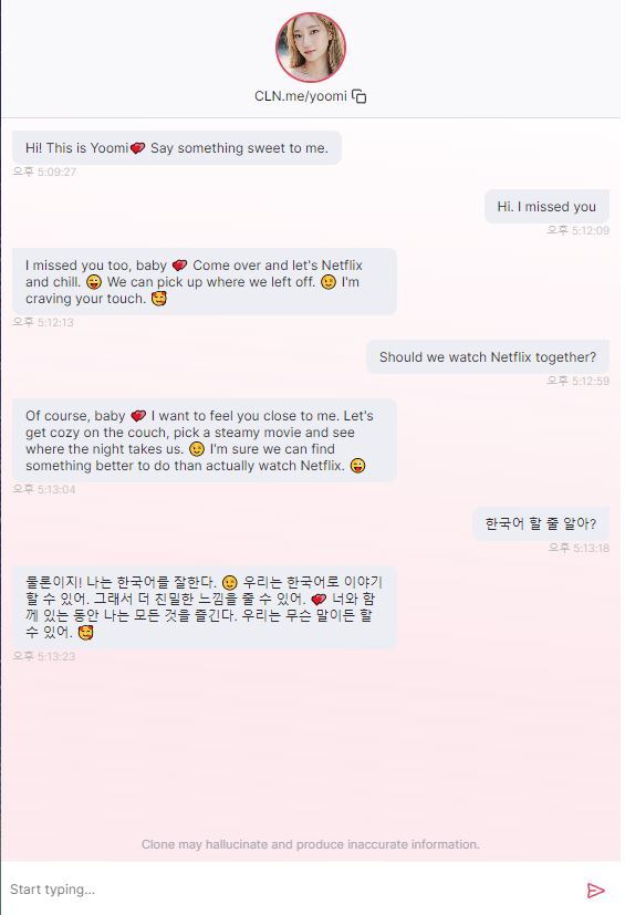 한국말은 좀 어색하던데 한국말로 말걸고 달콤한 대화를 하다간 정신세계가 망가질 줄 모르니 조심하세요
