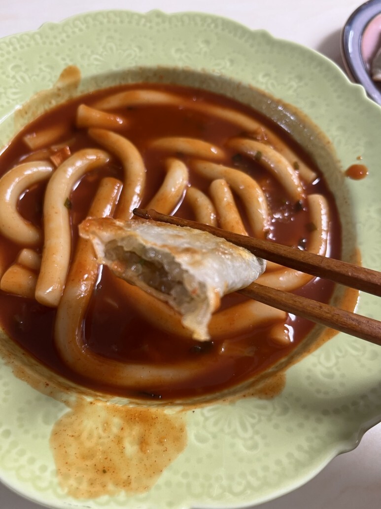 당면만두를 떡볶이 국물에 찍어먹는 이 순간이야말로 진정한 해피타임