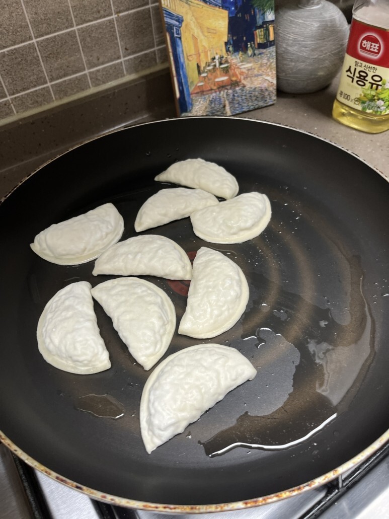 우선 풀스키친 통통당면튀김만두를 먼저 꺼내서 구워봅니다.