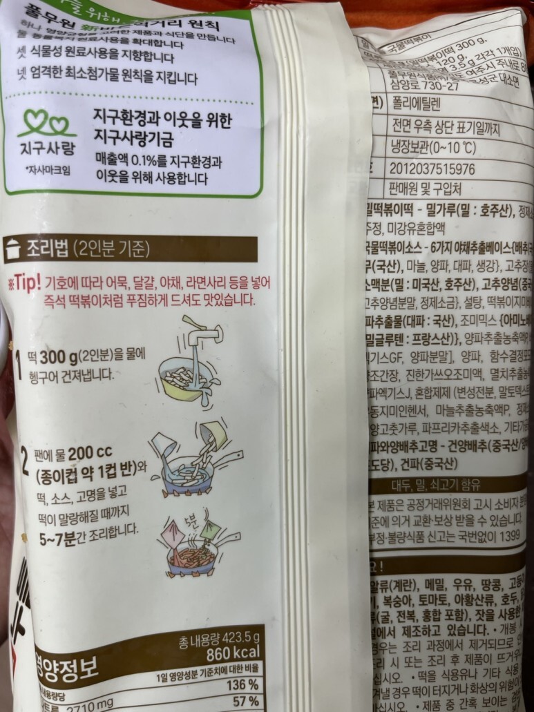 풀무원에서 출시한 떡볶이 제품입니다.