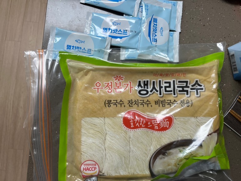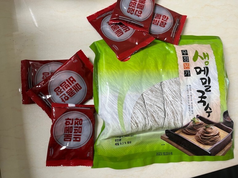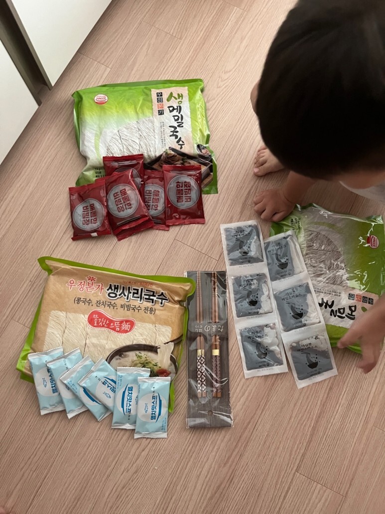 와이프가 공영홈쇼핑 보고 혹해서 우정본가 생메밀국수와 생사리국수를 잔뜩 샀다.