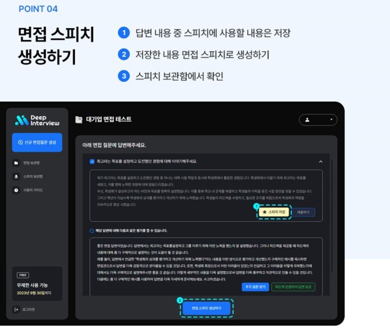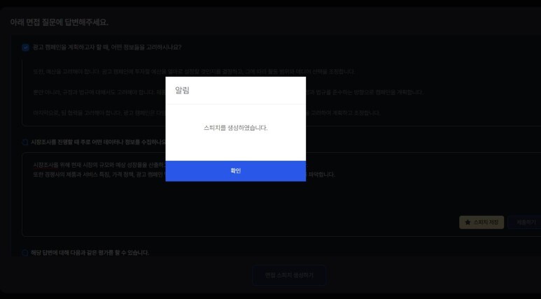 스피치를 몇개 저장 안했지만 면접 스피치 생성하기를 눌러봅니다.