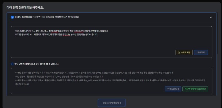 나중에 면접 스피치에 내용을 포함해서 자동생성 할거에요