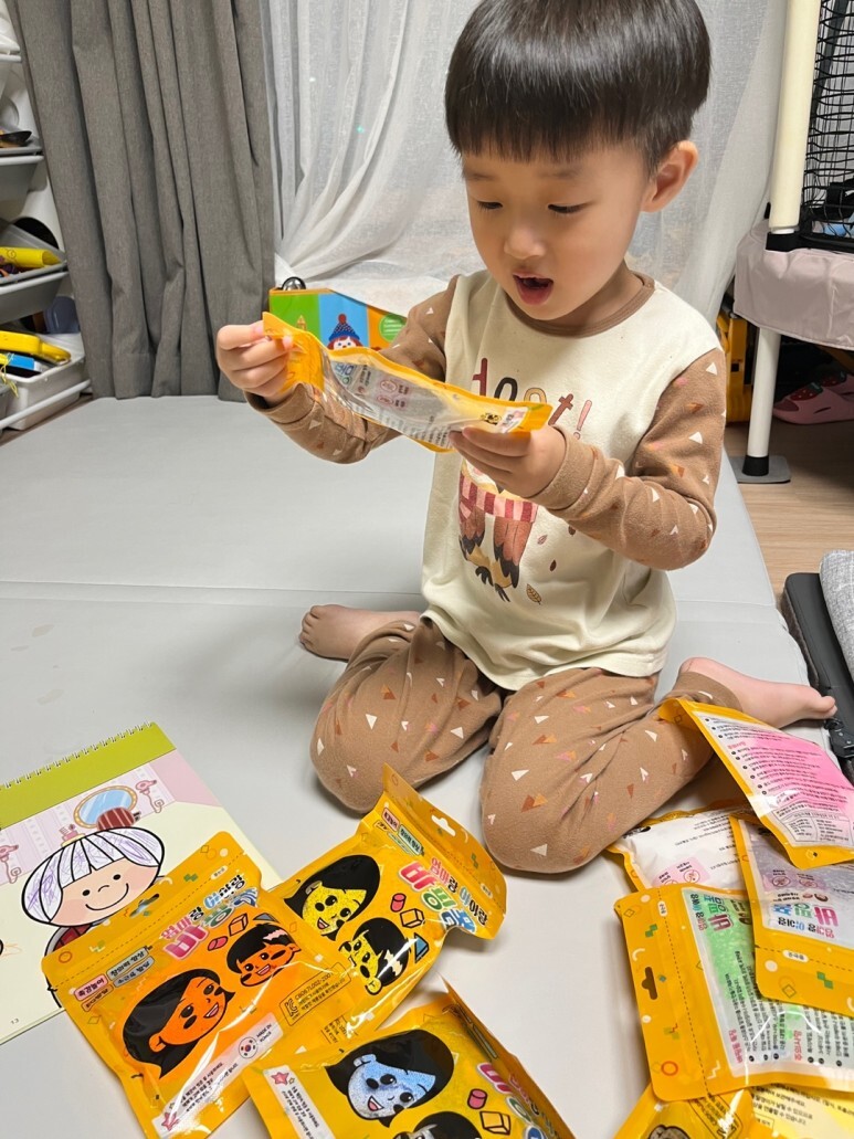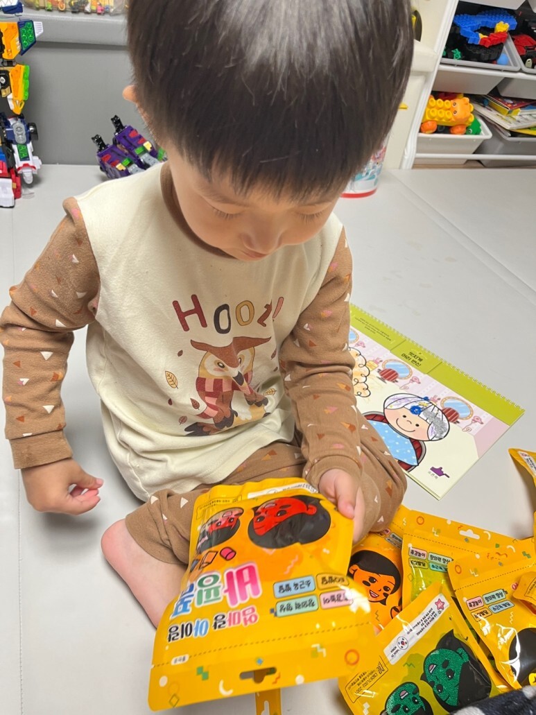 이제 아이가 원하는 컬러 부터 하나씩 뜯어서 사용해보도록 해요