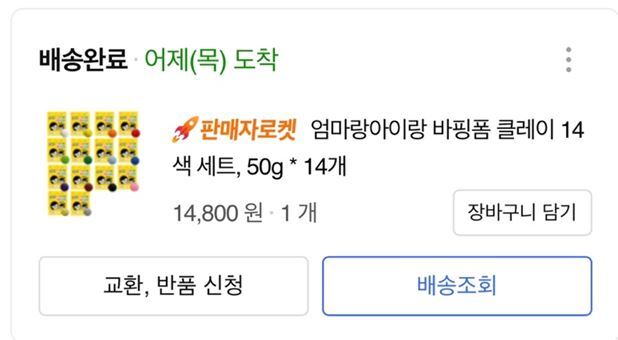 제가 구매했던 상품은 엄마랑아이랑 제품이구요 바핑폼 클레이 50g * 14가지 색깔 세트입니다. 14,800원이에요