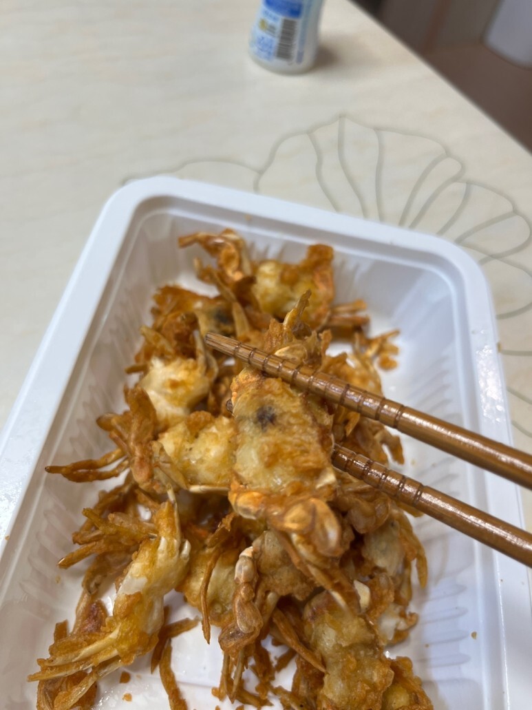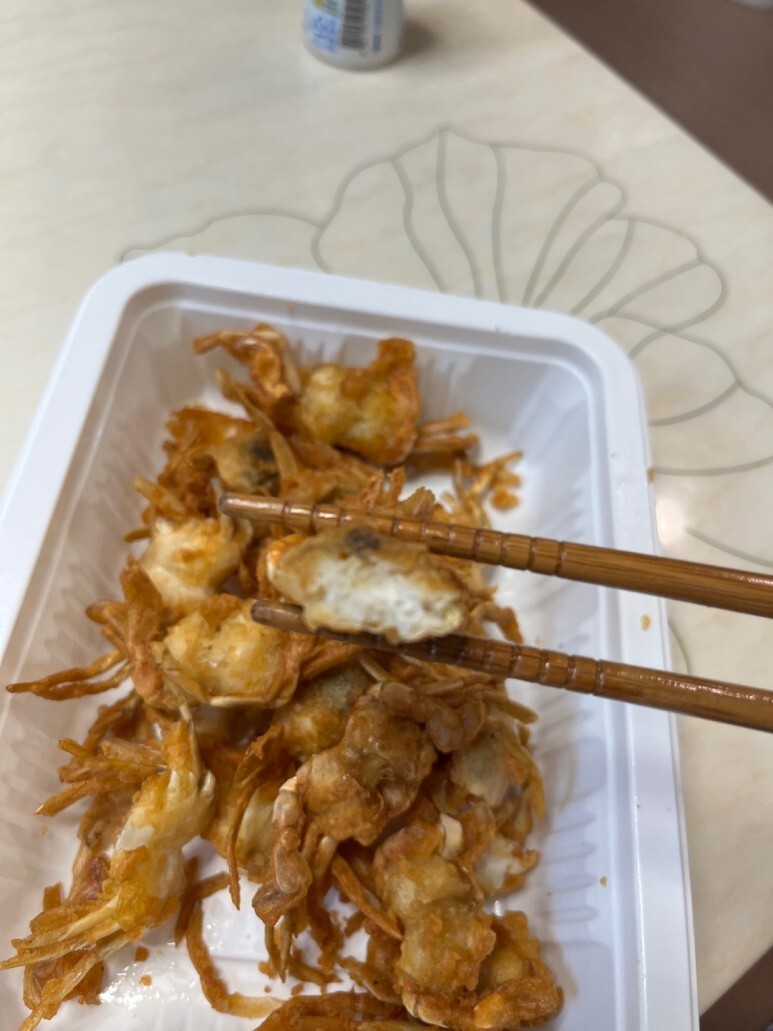 원래 베이비크랩은 일반 대게에 비해 크기가 작아 껍질이 부드럽고, 바삭한 튀김옷을 입혀 먹으면 맛있는 편이죠