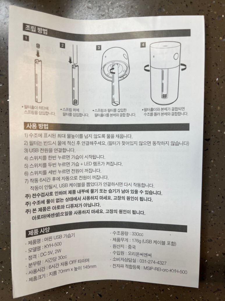 어쨌든 분무필터 스틱 2개에 usb 전원 케이블도 들어 있었습니다.