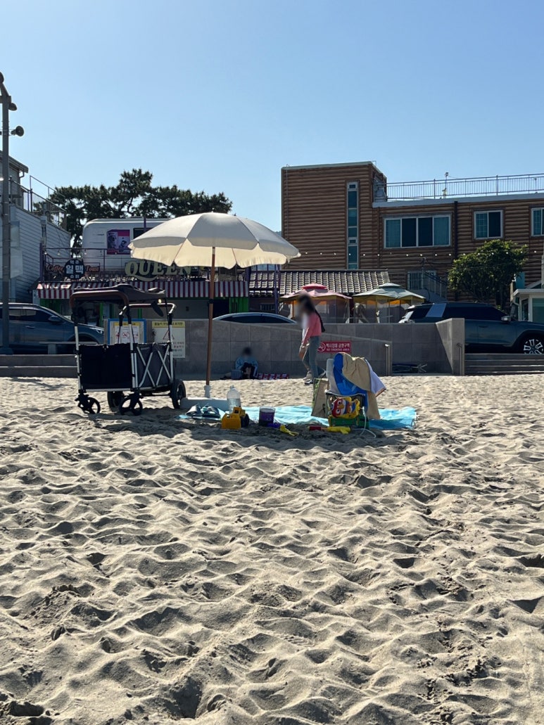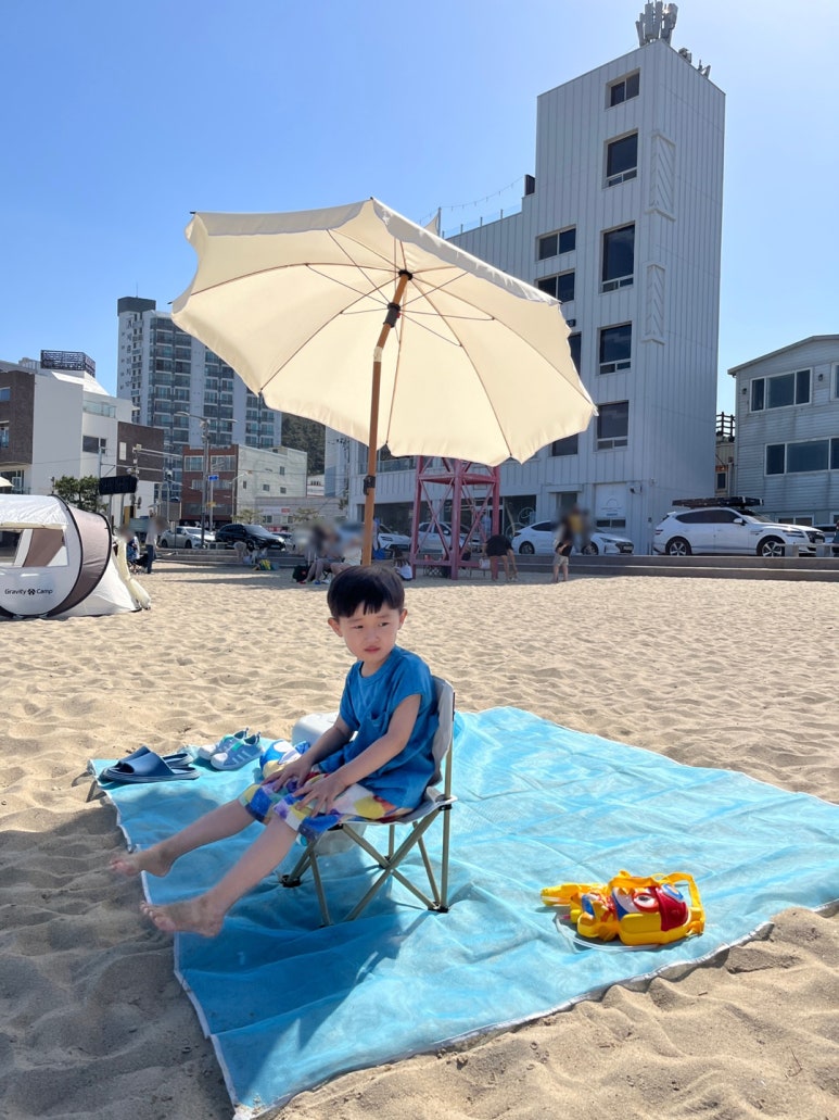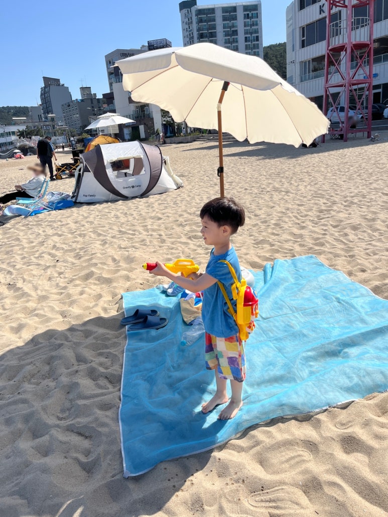 일광해수욕장에서 쿠웅샵 비치 파라솔과 마켓피오 비치 샌드 매쉬 매트 사용해 본 후기였습니다.