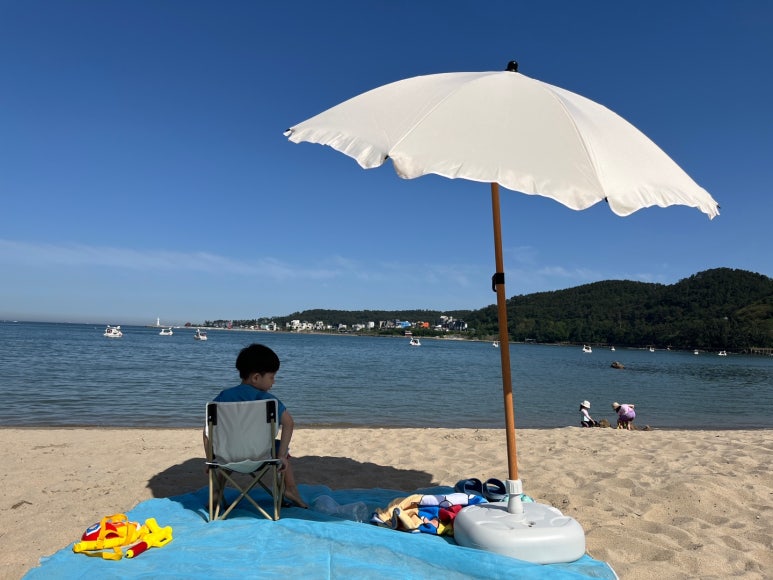 아이가 바닷가 모래놀이를 좋아하는데 작년에 땡볕에서 놀게 한 게 미안해서 올해는 해변용 비치 파라솔을 하나 장만했습니다.